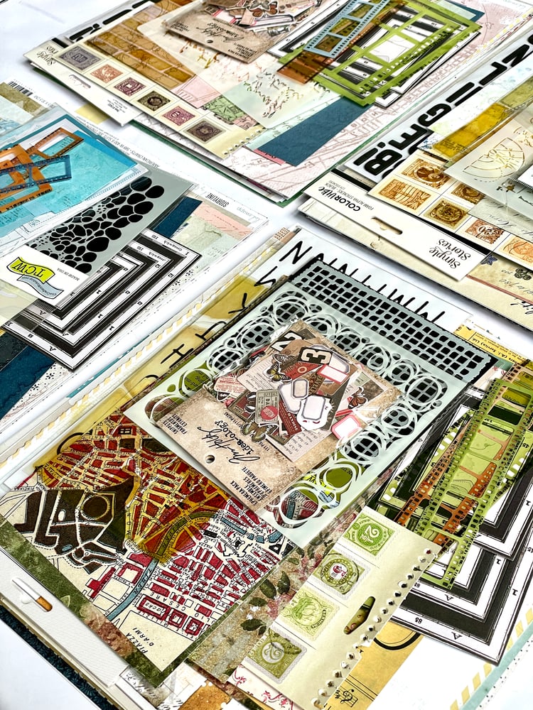 - 10 x doppelseitig gemustertes Papier von Tim Holtz 6 x 10" ( 15,3 x 25,5 cm)